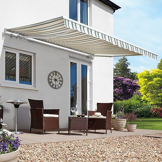 Meerveil Patio Retractable Manual Awning Easy Fit Garden Sun Shade