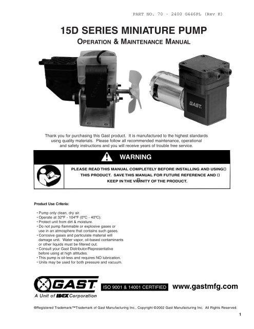 Gast 0523 Series Lubricated Laboratory Vacuum Pumps And Compressors User Manual 8 Pages Also For 0323 Series Lubricated Laboratory Vacuum Pumps And Compressors